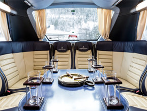 Комфорт и уют. В салоне автобуса просторно и светло, установлены удобные регулируемые кресла c откидными столиками. Для крупногабаритных вещей — спортивного снаряжения, театральных декораций — предусмотрено вместительное багажное отделение.